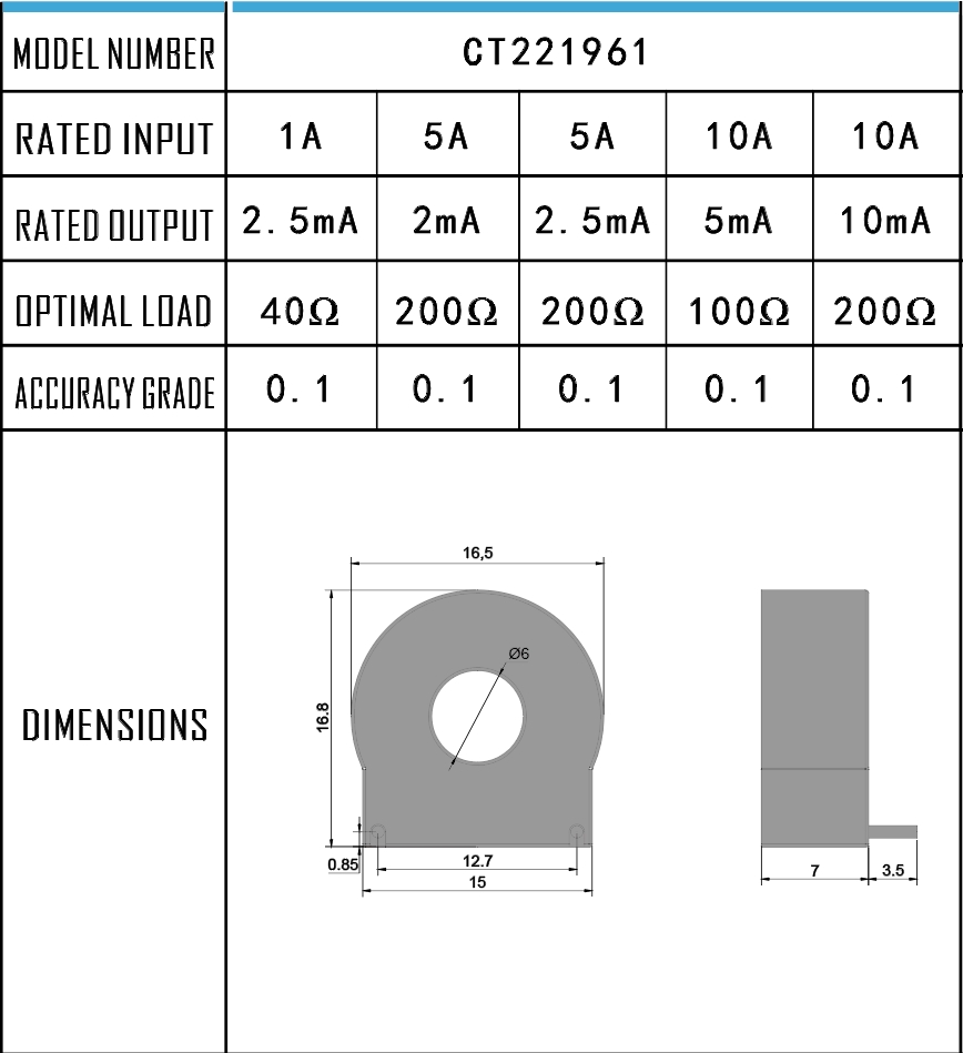 This series of products is small in size, high in precision, small in phase shift, and easy to use. It can accurately convert and isolate current signals and is mainly used in current, power and electric energy detection equipment or electric measuring instruments; at the same time, some products can use special processes to reach 10 times or even 20 times the overcurrent requirements, and can be used in power protection equipment.