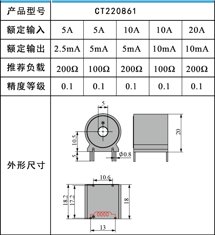 微型電流互感器用于將交流電流信號按比例變換為更低電平的交流電流或電壓信號。